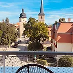 Die 2-Zimmer-Ferienwohnung Penthouse Traum - Blick Ueber Arnstadt bietet einen Blick auf den Garten und liegt in einer Entfernung von nur 8 Gehminuten von der Bachkirche Arnstadt.